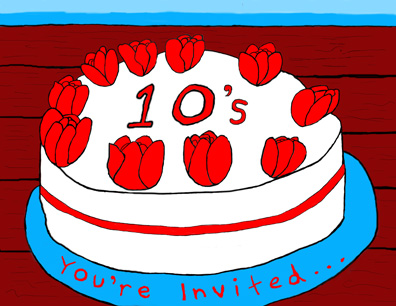 My first thought was a cake with ten roses on it and the number 10 in the center.